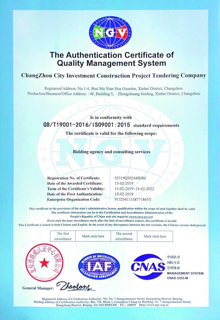 质量管理体系认证证书